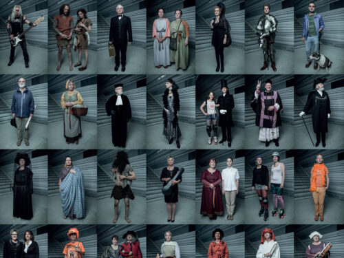 During the film-shoot for ‘Time Tunnel’, our video installation at Zwolle’s railway station, 500 locals participated as commuters from diverse periods. Five years later we present an outdoor photography exhibition of the participants. The life-size portraits will be displayed on construction fences around the station’s square and alternate every few months until construction is complete.