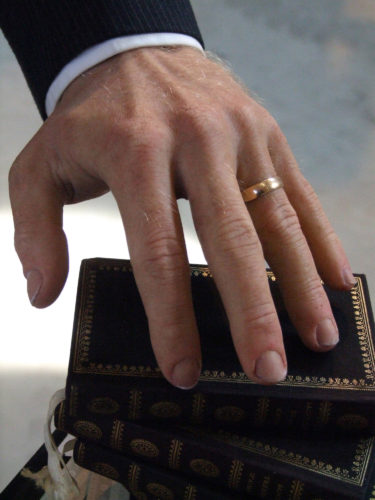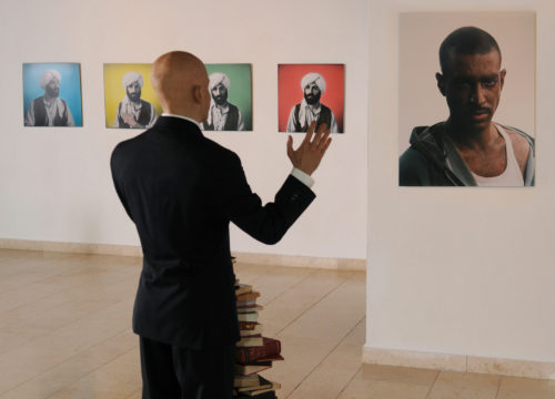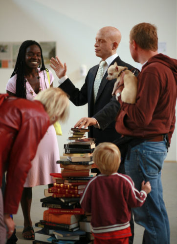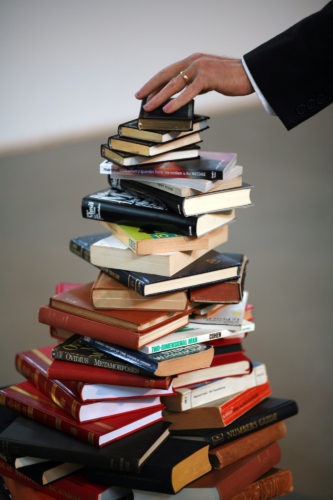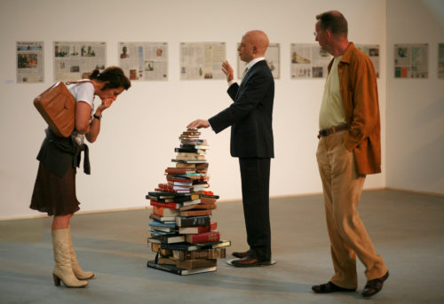 In order to appeal to all Norbert made a ‘Madame Tussauds’ like sculpture of himself, blindly swearing on a tower of ‘bibles’. His Biblelon canon includes classics from the ‘King James Bible’, ‘Torah’, ‘Koran’ & ‘Bhagavad-Gita’, to ‘Das Capital’, ‘Mein Kampf’, ‘Church of Scientology’ & ‘How to Win Friends and Influence People’.