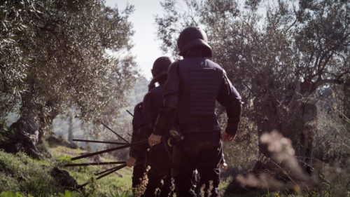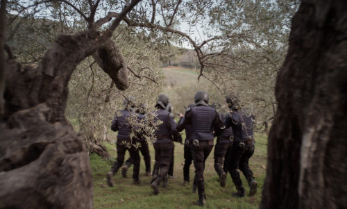 An abnormal phenomenon in an olive grove draws riot police to suppress the uprising.