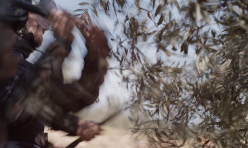 Inspired by the ancient olive harvesting method in which aggression and cultivation come together, the film portrays the absurdity of enforced ideologies.