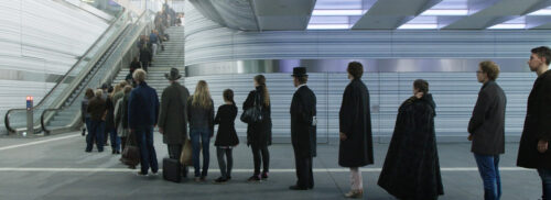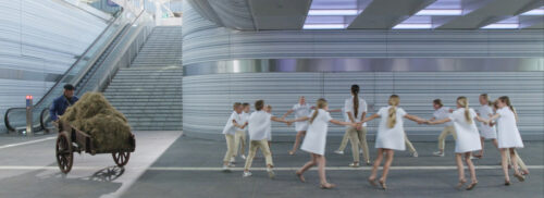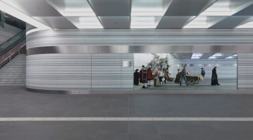 Commuters traveling through the new Zwolle station encounter a panoramic video that was shot at the exact same location. It is an ever-changing tableau vivant without beginning or end. The video was shot with the participation of more than 500 locals that recreated scenes from the city over the course of its long history and imagined future.