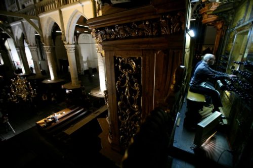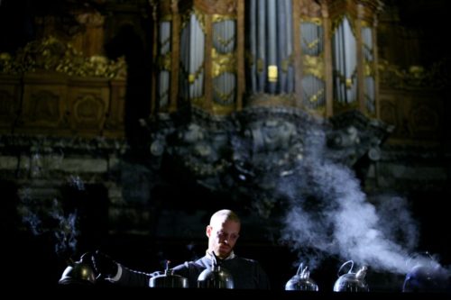 The church organ at the old church of Amsterdam, which normally plays religious music, adapts itself to the minimal sounds of boiling teakettles in a site-specific performance during Museum N8 2007.